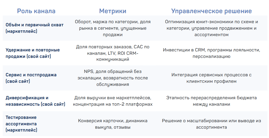 Самая распространённая управленческая ошибка при анализе каналов — сравнивать их по стоимости транзакции. «На маркетплейсе дешевле привлечь заказ» или «на сайте меньше комиссия» — оба суждения правильны в частном случае и бесполезны как основание для решения, потому что каналы решают разные задачи.