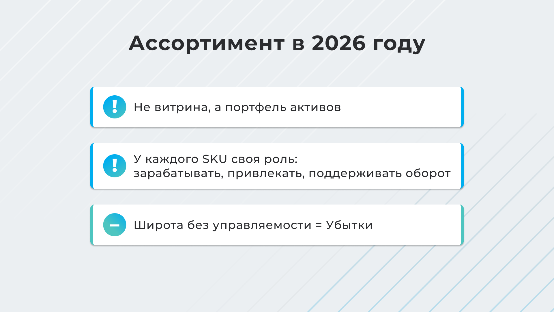Ключевой принцип 2026: меньше SKU — выше управляемость и прибыль.