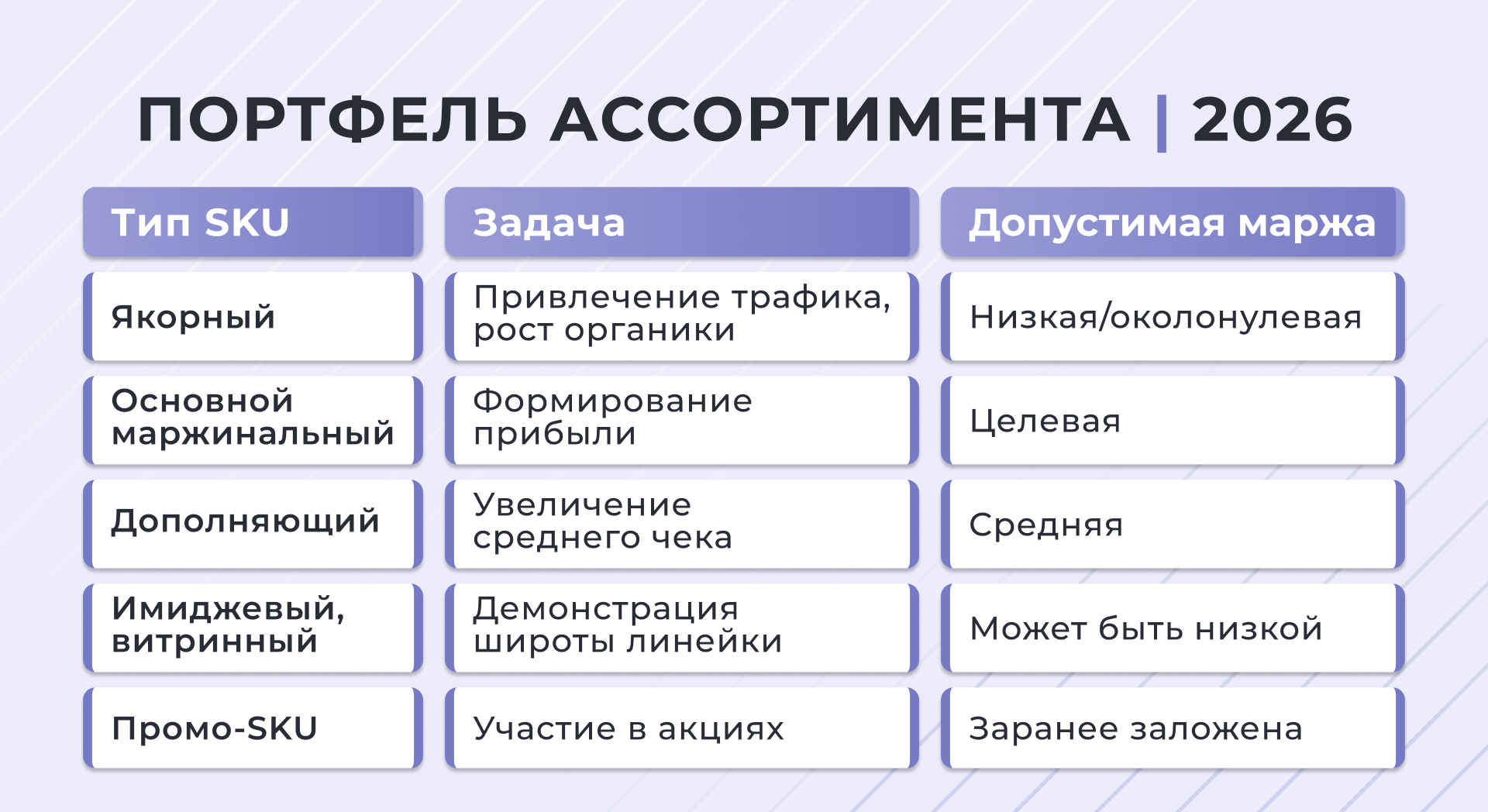 В 2026 каждый SKU должен быть отнесён к одной из ролей: