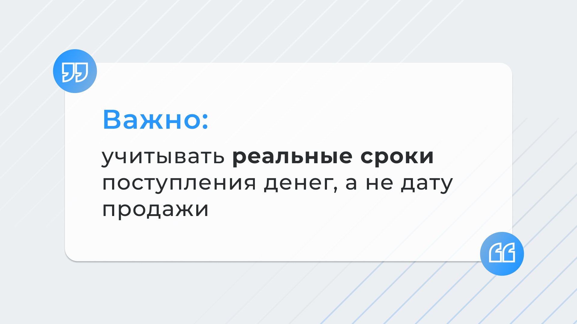 Важно: учитывать реальные сроки поступления денег, а не дату продажи.