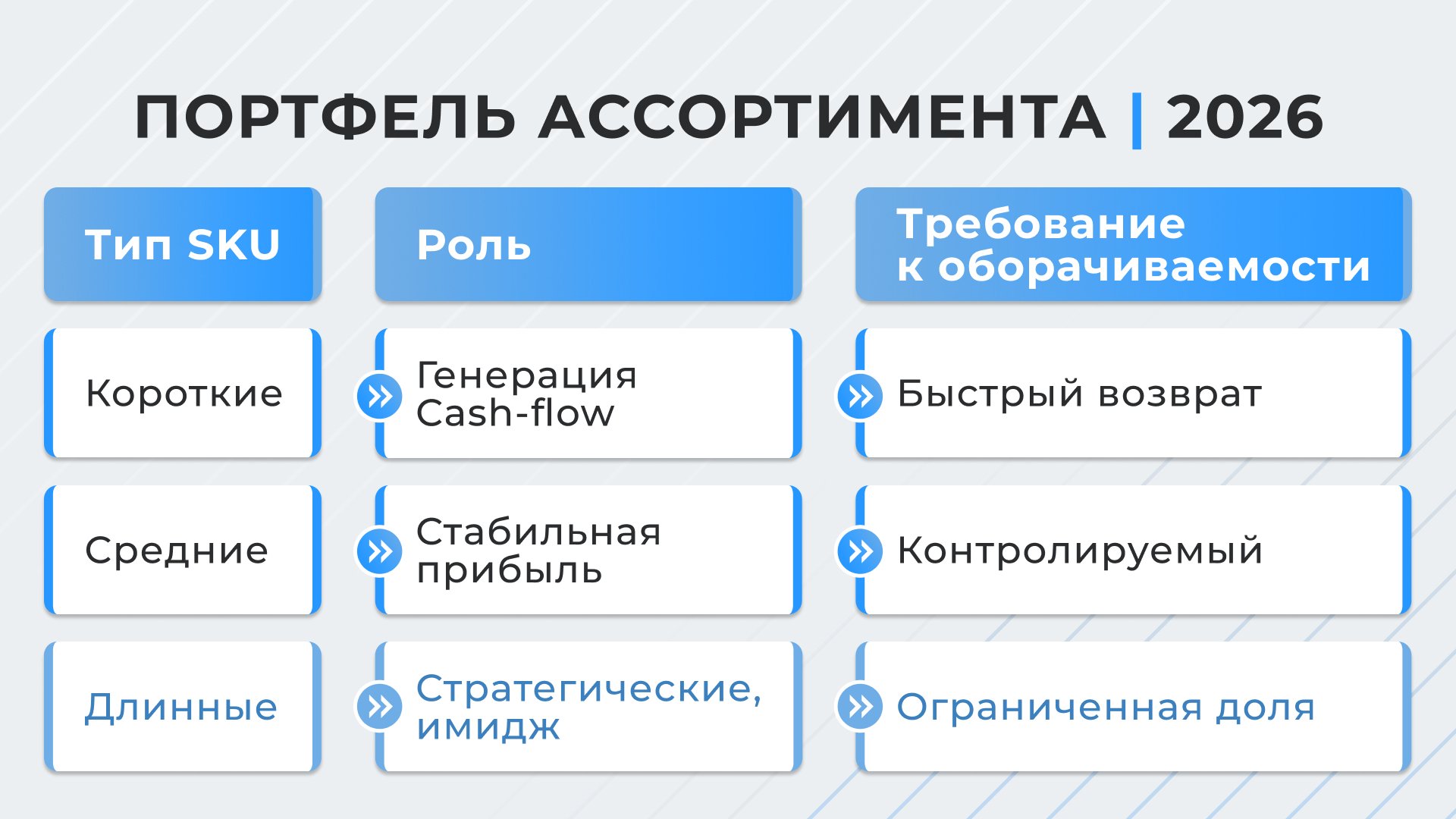 В 2026 портфель должен быть смещён в сторону коротких и средних SKU (артикулах).