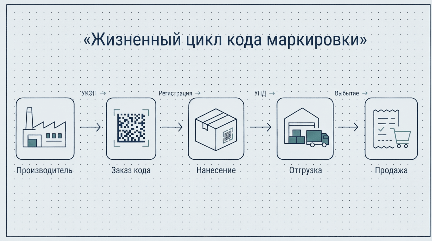 Зарегистрироваться в системе обязаны все участники оборота — от изготовителя до точки продажи. Для входа понадобятся учетные данные Госуслуг и УКЭП. Заказывать код маркировки нужно заранее, до того как продукция попадет в оборот. Перевернутый порядок — сначала продали, потом оформили — квалифицируется как административное правонарушение. Запрос идет только от собственника товара через личный кабинет ГИС МТ. Стоимость одного кода — 50 копеек без НДС.