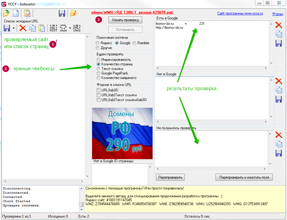 Для массовой проверки индексации есть отличное бесплатное и базовое решение — YCCY. Да, программа старая, но свою задачу программа решает на 100%.