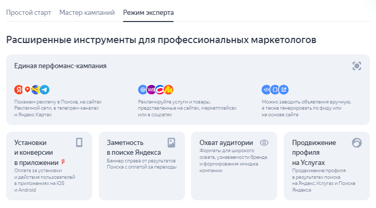 Важно помнить: каждый инструмент в Директе решает свою задачу и делает это по-своему. Это касается как традиционного Поиска и РСЯ, так и кампаний на маркетплейсах, телеграм-каналах или гео-сервисах.