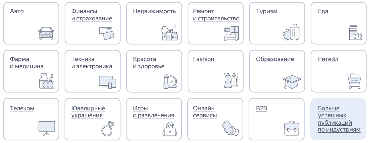 ПромоСтраницы подходят практически любому бизнесу — от товаров массового потребления до специализированных B2B-ниш. Главное — подавать информацию интересно и нативно. Качественные и полезные тексты, учитывающие потребности аудитории и ее «боли», позволят алгоритмам РСЯ корректно определить целевую аудиторию.