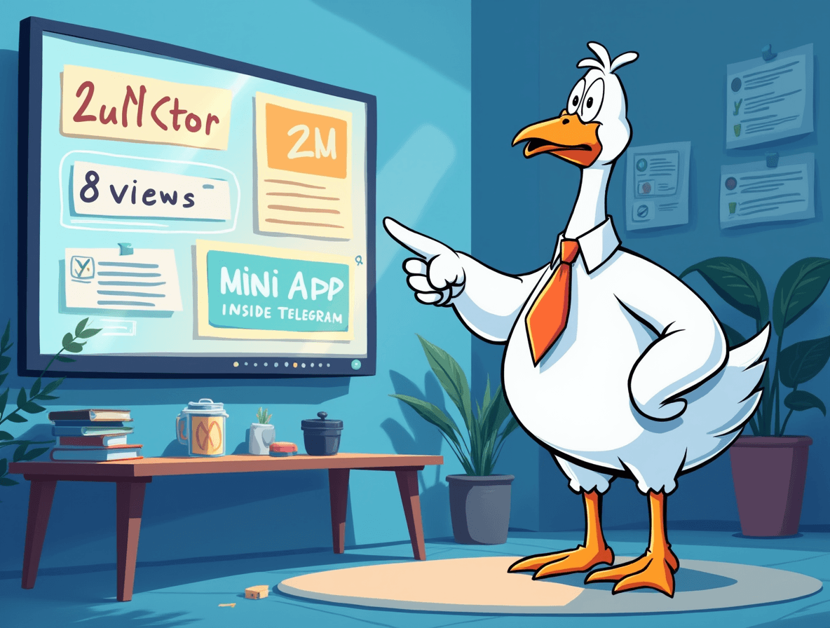Mini App — это небольшое приложение внутри Telegram, которое работает как полноценная платформа. Участнику не нужно ничего устанавливать или регистрироваться — он просто открывает бот, нажимает кнопку, и внутри у него: