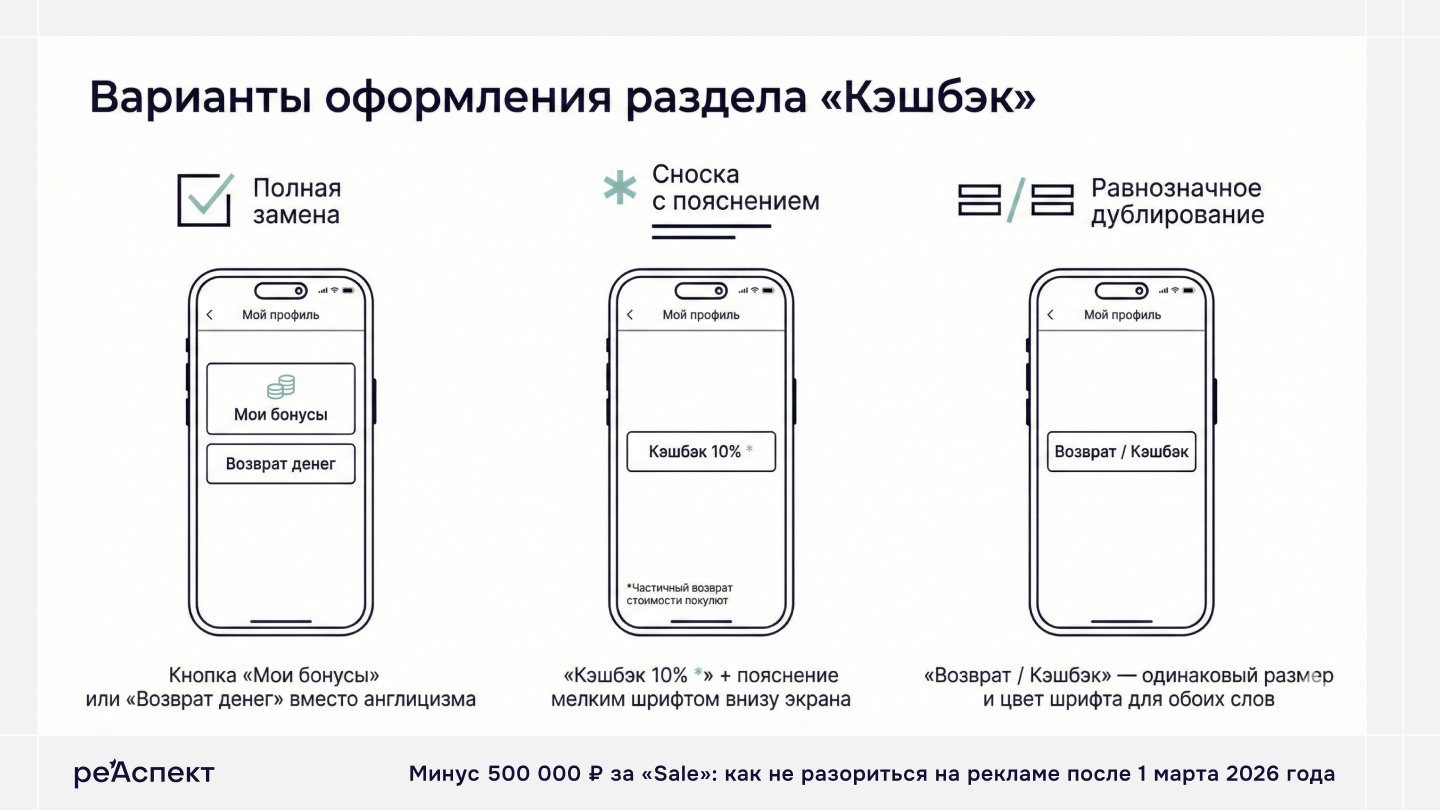 Пример: оформление раздела «Кэшбэк в приложении» по новым правилам.