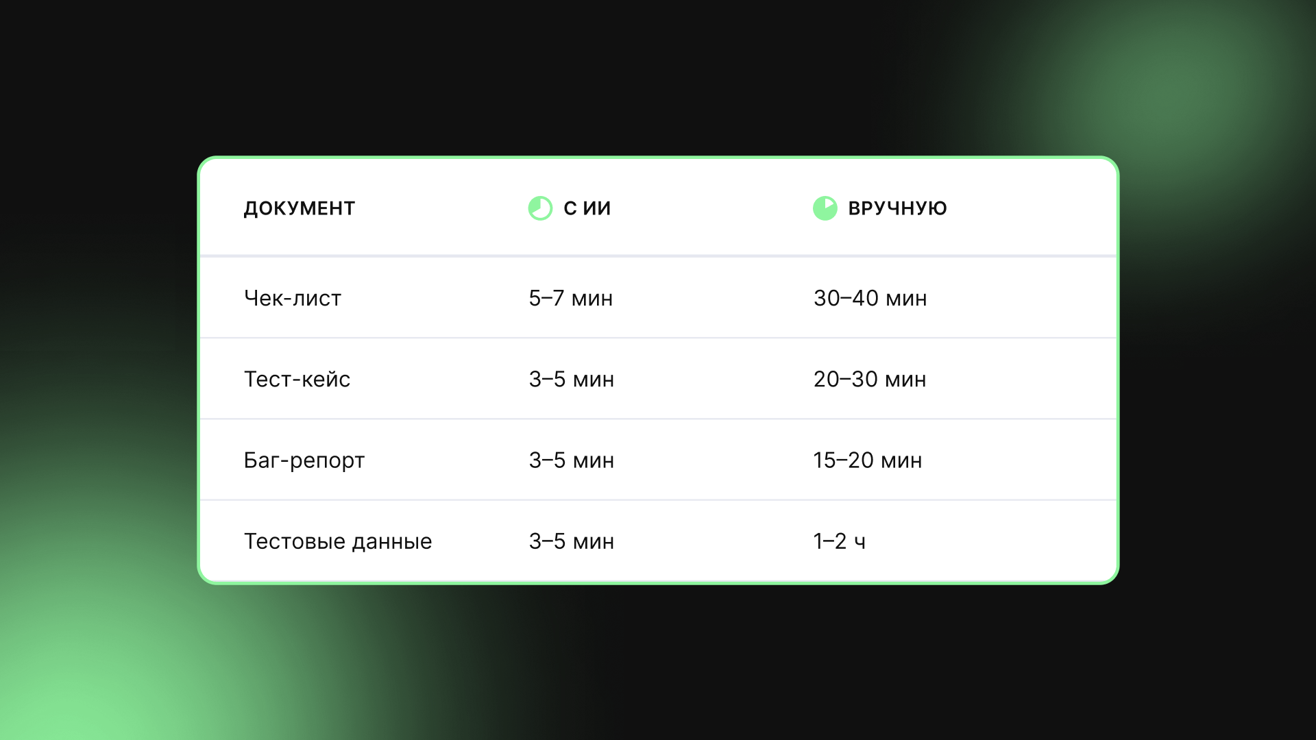 Мы провели эксперимент. Один тестировщик писал документацию вручную, а другой использовал ИИ. Результаты наглядные.