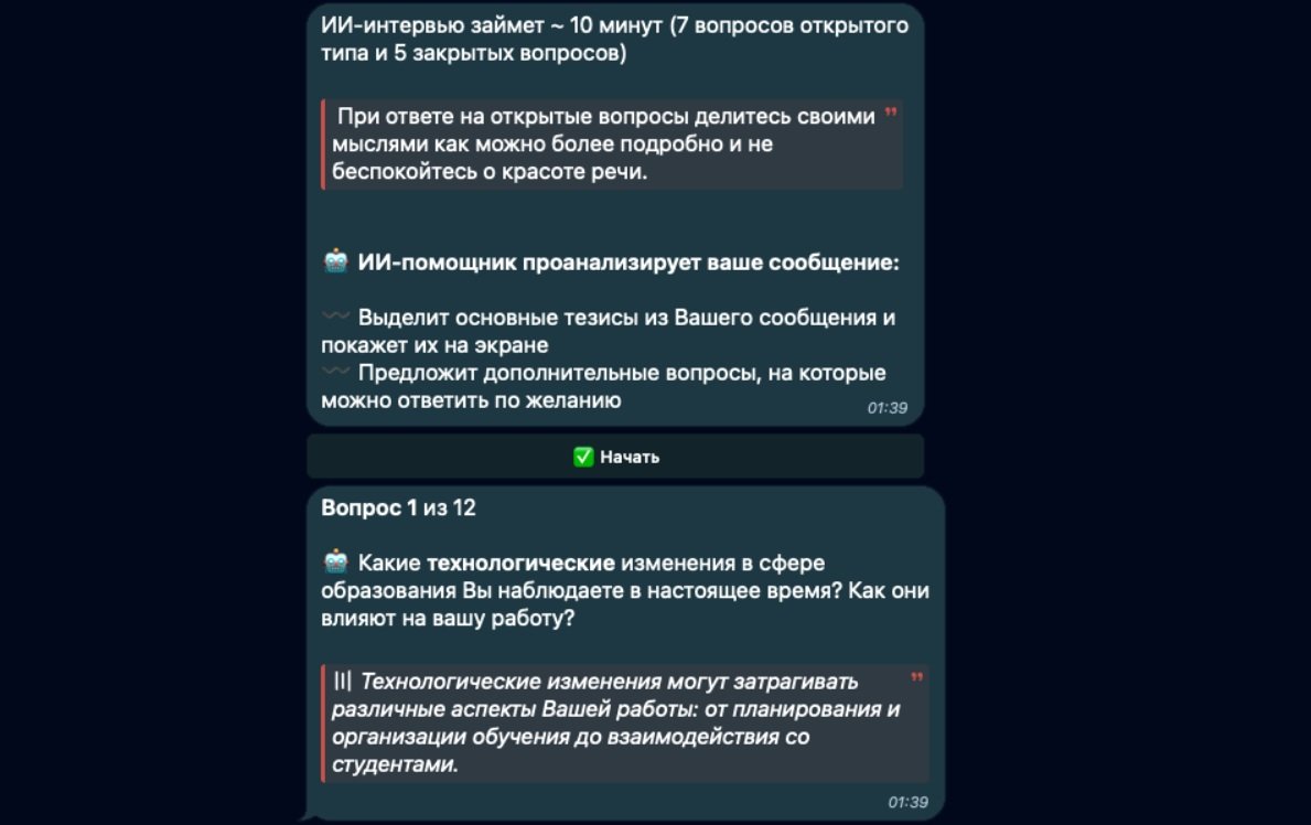 Искусственный интеллект ведет асинхронные интервью и адаптируется к разным сценариям беседы — задает следующий вопрос, исходя из ответа на предыдущий. Затем группирует ответы по темам и помогает выделить ключевую информацию.