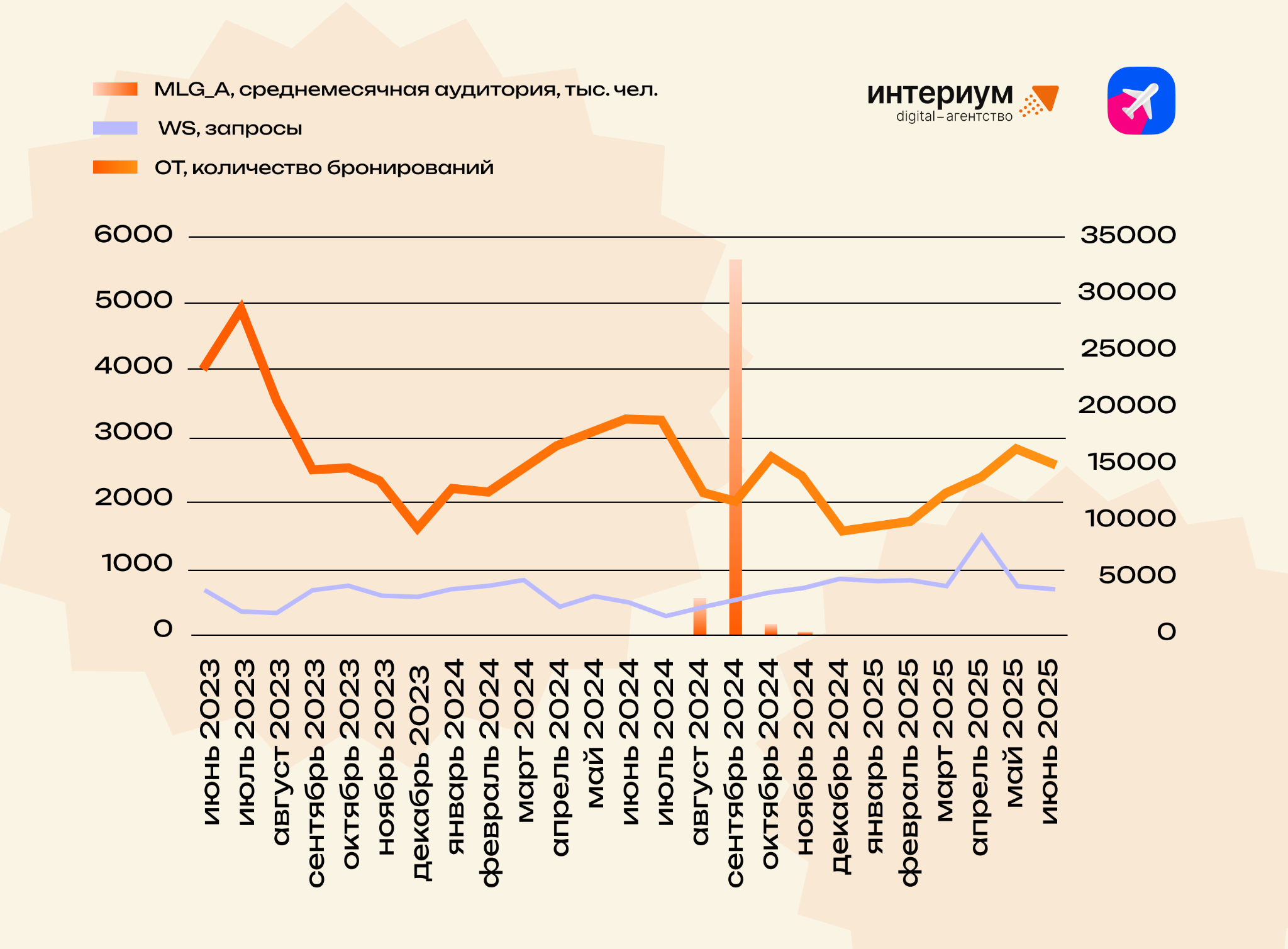 Напротив, сериал «Слово пацана» вызвал большой интерес к Казани, но не конвертировался в реальный спрос — шоу вышло осенью, вне активной фазы планирования поездок.