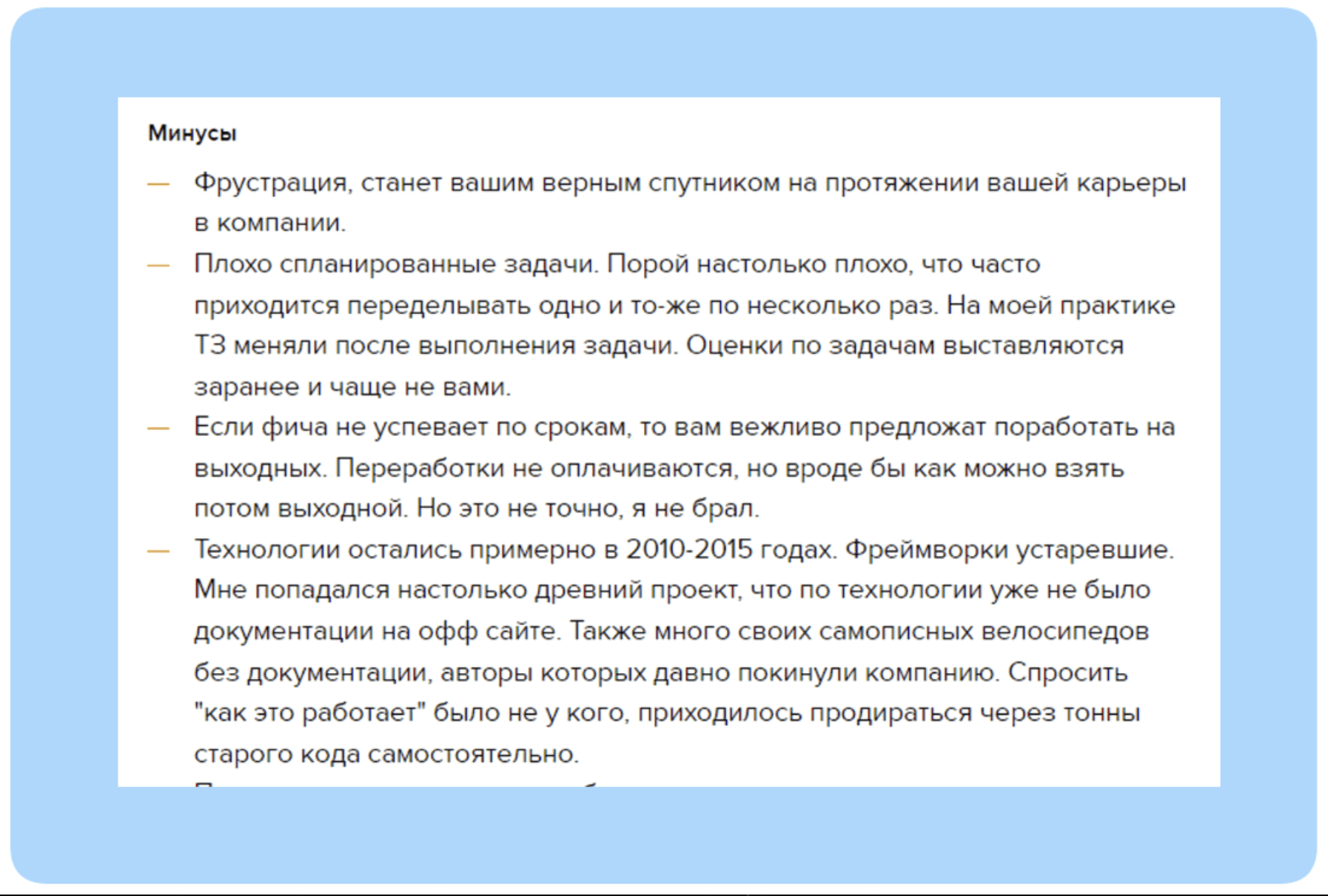 Обратите внимание на технологический стек подрядчика. Убедитесь, что их экспертность соответствует требованиям вашего проекта, и они используют современные инструменты и методологии разработки. Громкие обещание типа «Работаем со всеми технологиями, возьмем любой проект» должны вызывать сомнение.