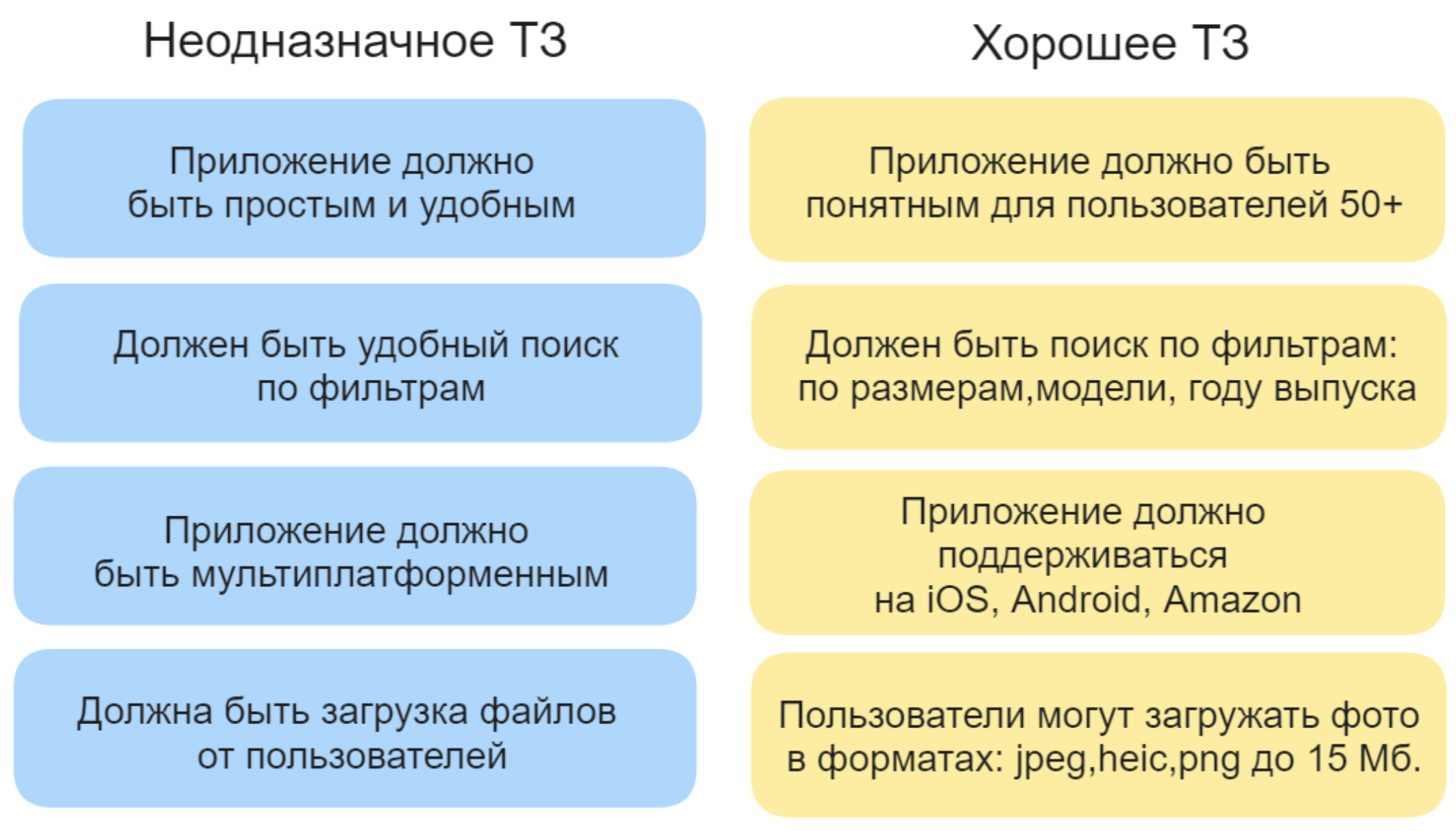 В идеале, если вы ещё определите максимальный возможный бюджет. Тогда подрядчик сразу сможет предложить наиболее подходящее решение ваших задач.