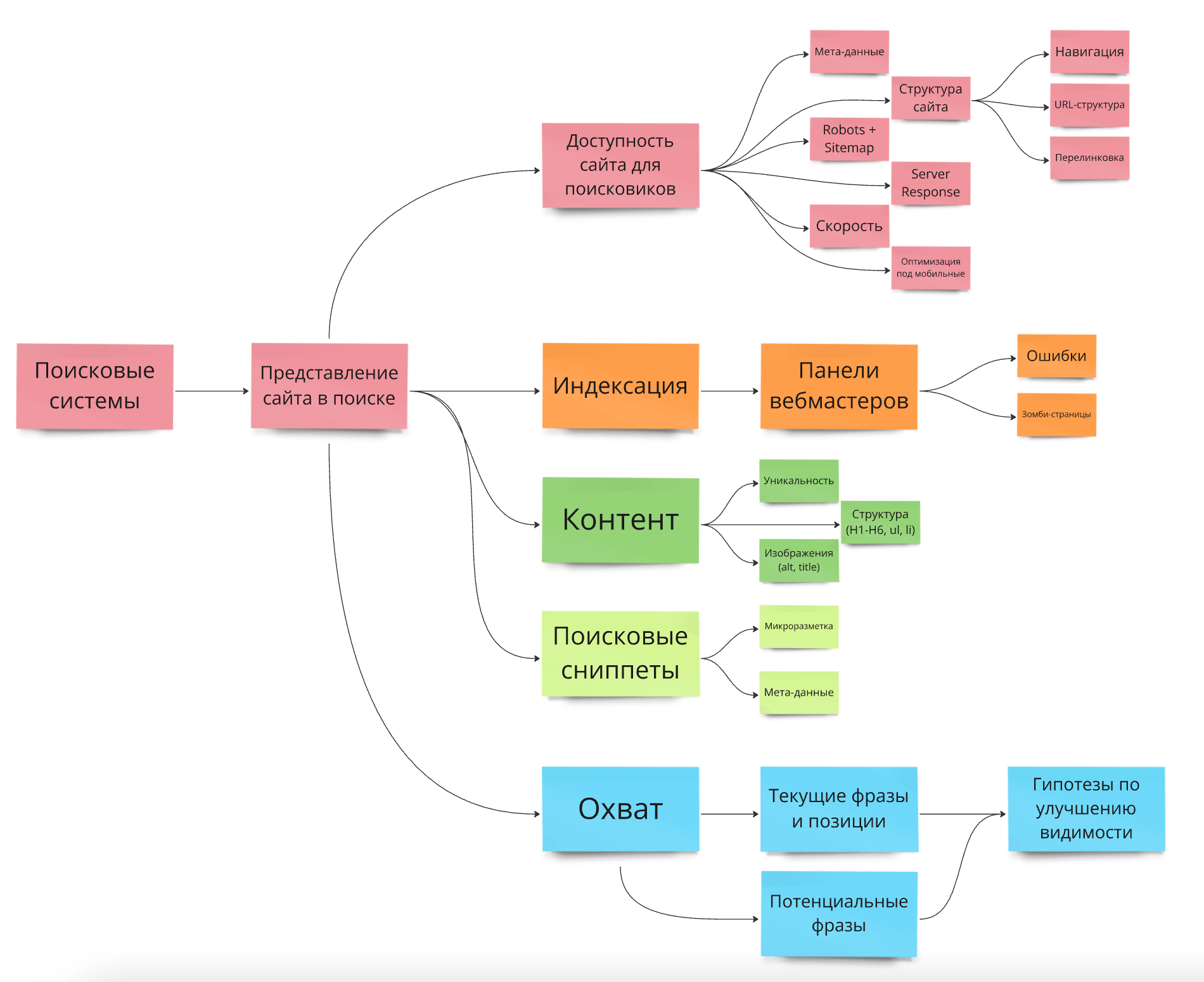 На основе полученных в ходе аудита данных мы формируем список рекомендаций и замечаний к сайту. В основу такого списка входят результаты: