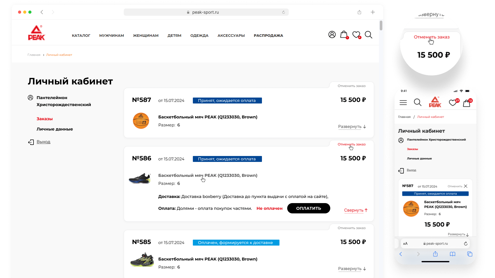 ✅ Отмена заказа в один клик. Важно сделать опцию полностью автоматической — без участия менеджера. Когда покупатель нажимает одну кнопку в личном кабинете и получает возврат средств.