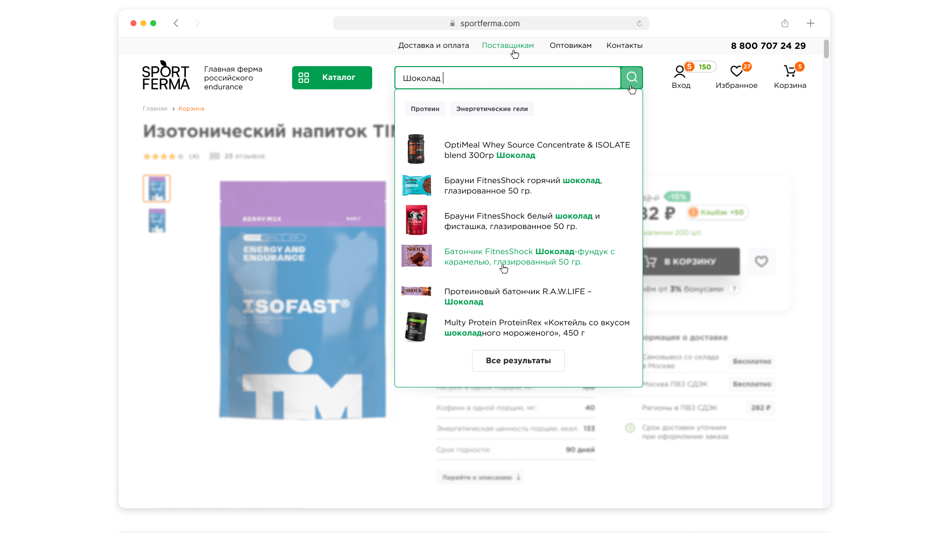 ✅ Умный поиск. Сейчас часто встречается такой сценарий: человек заходит в онлайн-магазин и пользуется поисковой строкой, как в Яндексе или Google, — например, ищет какую-то категорию товаров. Обычный алгоритм не справляется с таким типом запросов и мало что находит. Если сделать умный поиск, взаимодействие получится как на маркетплейсах: покупателю удобно искать товар не только по названию бренда, но и просто по категории.