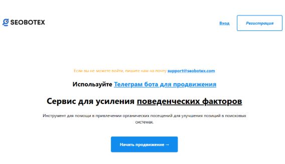 Seobotex специализируется на автоматической накрутке ПФ с использованием ИИ-алгоритмов для имитации естественного поведения пользователей. Платформа делает ставку на качество трафика и безопасность для сайта.