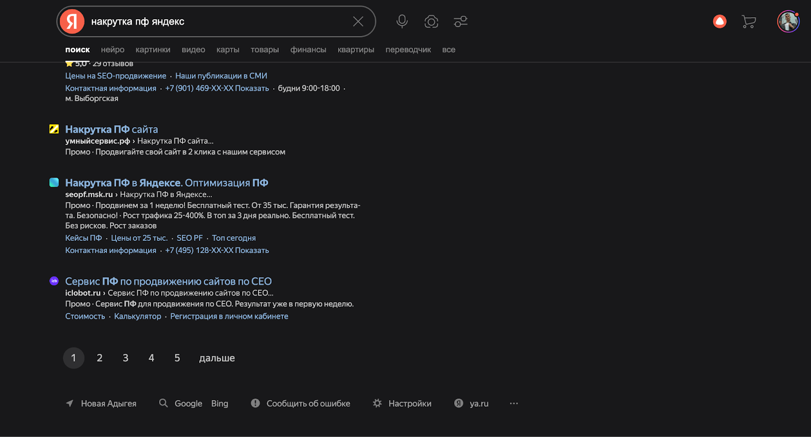 Большинству владельцев сайтов оптимальнее всего крутить ПФ с помощью специализированных сервисов. Их очень просто найти: вбить в поисковик запрос «накрутка пф» и посмотреть результаты выдачи.