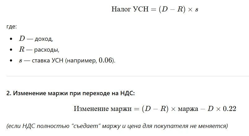 Допустим, тот же ИП переходит на УСН + НДС. Средняя маржа до НДС составляла 15 % от выручки. После введения НДС ставка 22%, тогда компания вынуждена или повышать цену, или повышать маржинальность.