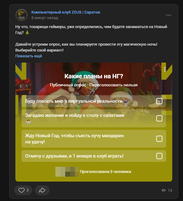 Опрос: что из перечисленного вы планируете делать до Нового года, в праздники и после них? VK Реклама