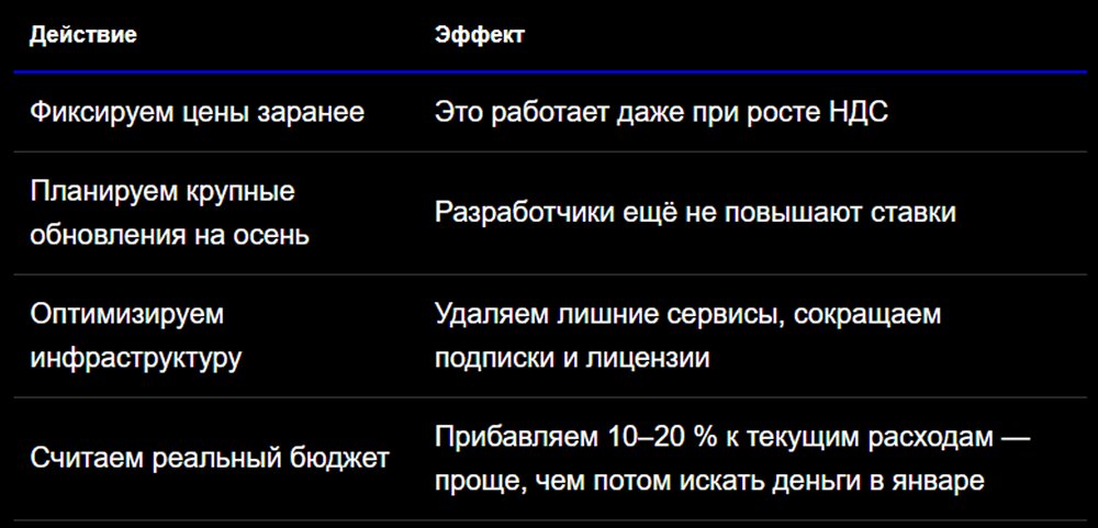 В 2025 году IT-сектор в России сталкивается с серьёзными бюджетными изменениями. Рост НДС, повышение цен на лицензии и общая IT-инфляция могут заметно ударить по вашему бюджету.