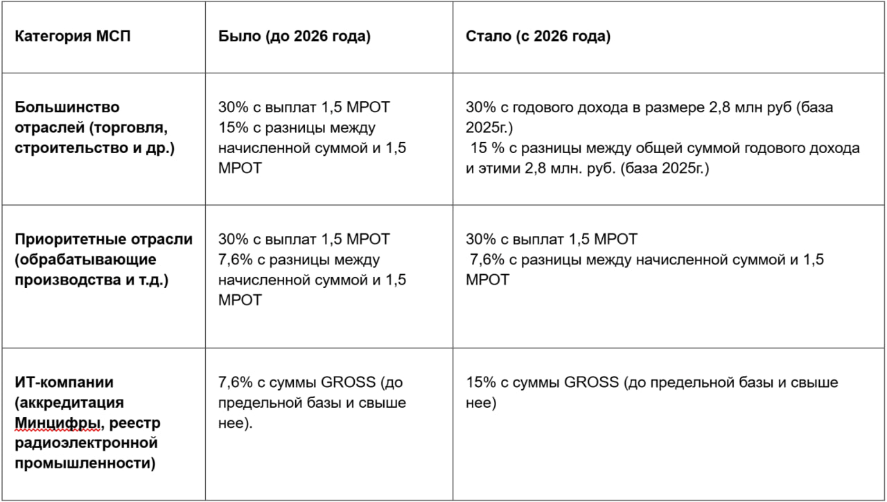 Одним из значительных изменений является отмена пониженного тарифа страховых взносов для большинства малых и средних предприятий (МСП). Если раньше ставка составляла 15%, то с 2026 года все компании МСП, за исключением некоторых приоритетных отраслей, будут обязаны платить по стандартной ставке 30%. Это означает, что для большинства компаний из сектора МСП фонд оплаты труда станет значительно более дорогим.