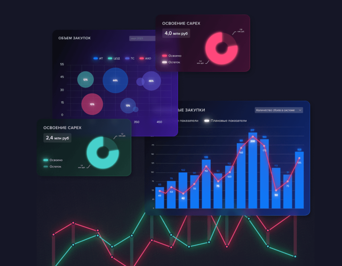 Бизнес-аналитика для малого, среднего и корпоративного бизнеса. Сервис предлагает кастомную визуализацию данных, ML-прогнозирование и встроенное хранилище данных. Есть готовые продукты для FMCG и ретейла, SMB и крупного бизнеса.