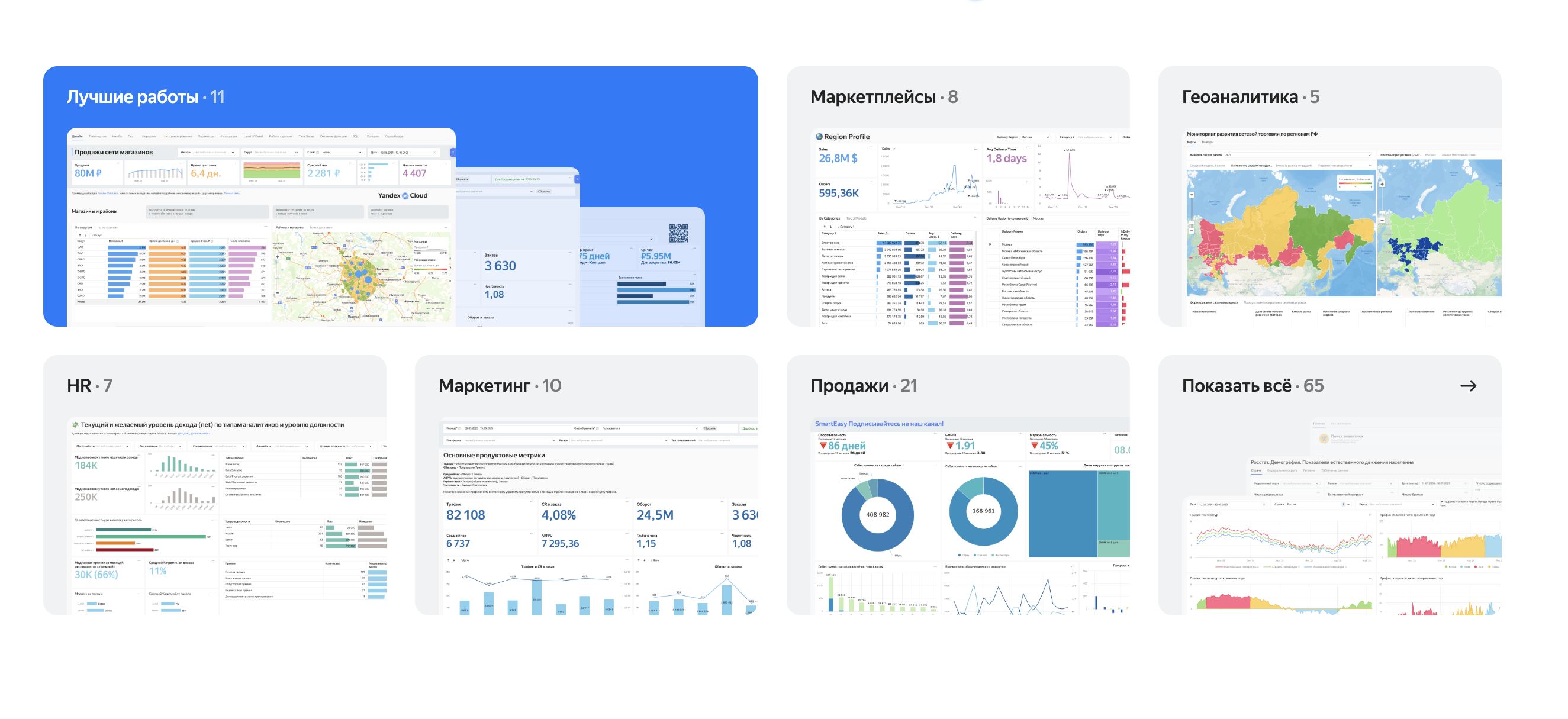 Бизнес-аналитика от Яндекса для анализа и визуализации данных. Реализовано в облачном формате.