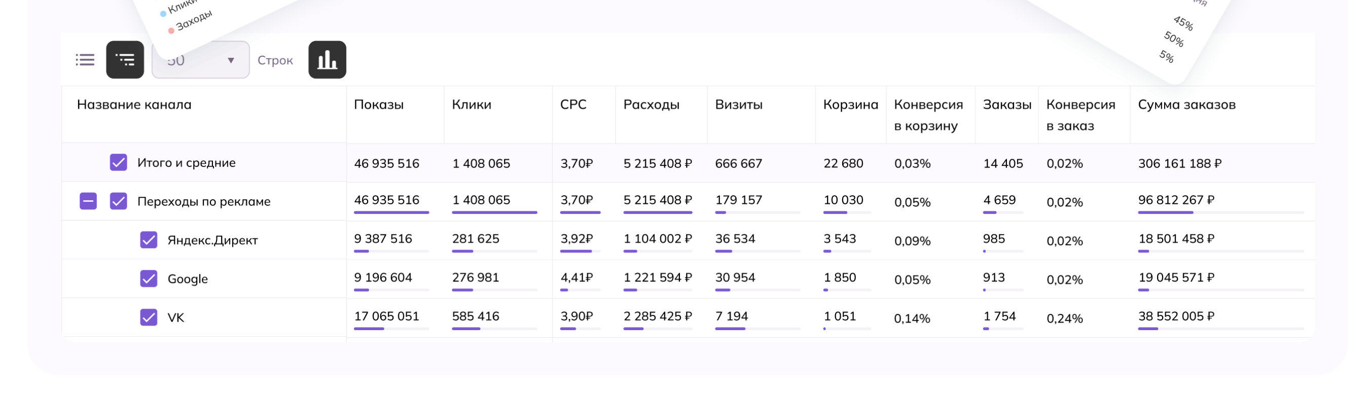 Именно в этот момент становится актуальной BI, система бизнес-аналитики. С ней можно не только видеть все траты и результаты маркетингового продвижения, но и оценивать, насколько эффективно тратится бюджет, а также какие каналы расходуют ваши средства впустую.