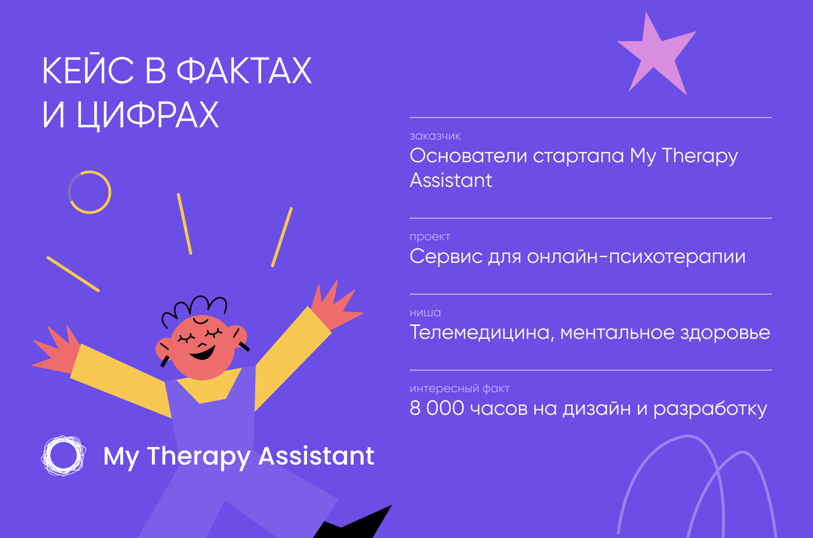 Решение. В Purrweb для сервиса онлайн-психотерапии My Therapy Assistant продумали все сценарии, которые могут понадобиться пользователям. У них есть возможность: