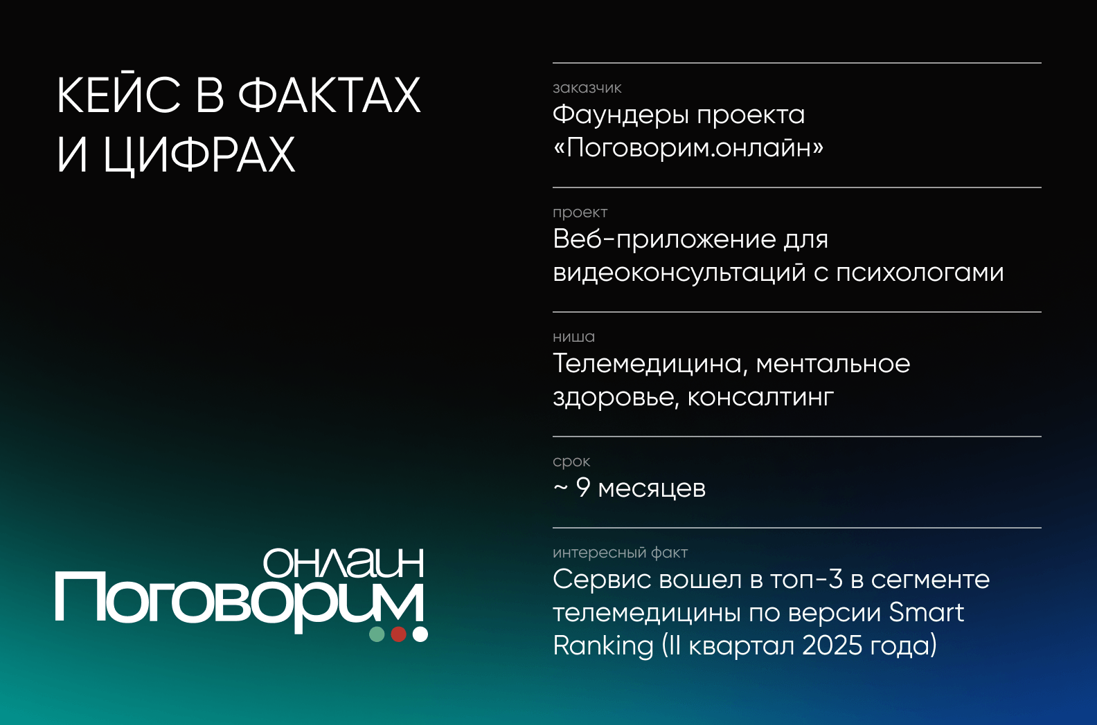Благодаря вниманию к деталям получилось создать удобную платформу и для клиентов, и для терапевтов. По версии Smart Ranking, сейчас проект входит в топ-5 медтех-компаний РФ, а в нише телемедицины занимает второе место.