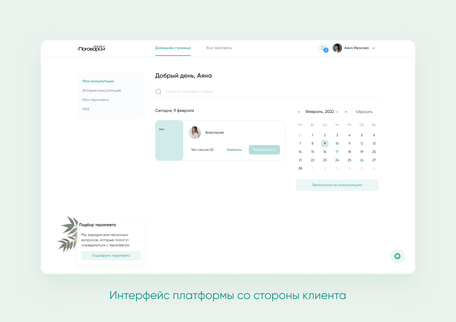 Например, к нам в Purrweb однажды обратились за разработкой платформы для онлайн-консультаций «Поговорим.онлайн». Заказчик предоставил брендбук, чтобы мы использовали готовые визуалы в интерфейсе веб-приложения. Это были объемные иллюстрации с растительными орнаментами.