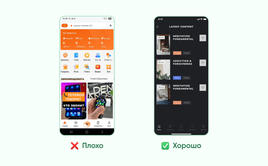 Запутанная навигация. Продуманная навигация помогает добраться до нужной функции за 1-3 касания, не заставляя пользователя держать в голове цепочку шагов.