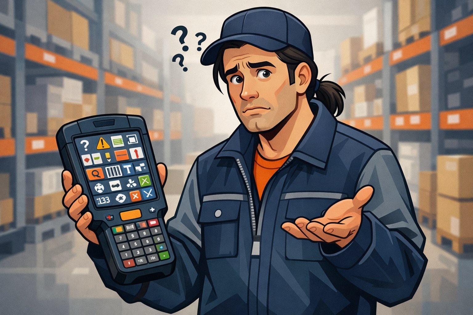 Представьте: вы запускаете новый склад. Закупили современные терминалы сбора данных — сканеры, которые должны ускорить работу комплектовщиков в два раза. Отдаёте их сотрудникам, а через день смотрите статистику — производительность упала. Люди злые, коробки стоят, ошибок в десять раз больше.