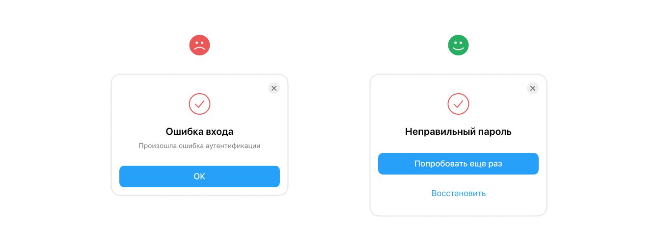 — Избегайте расплывчатых формулировок, дайте пользователю чёткие инструкции, что нужно сделать