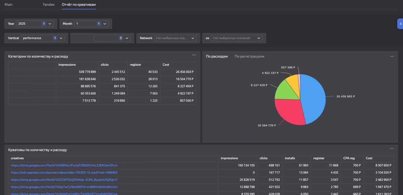 Особенно это актуально для performance-команд, которые работают с большим числом каналов, креативов и показателей. Визуальная подача помогает: