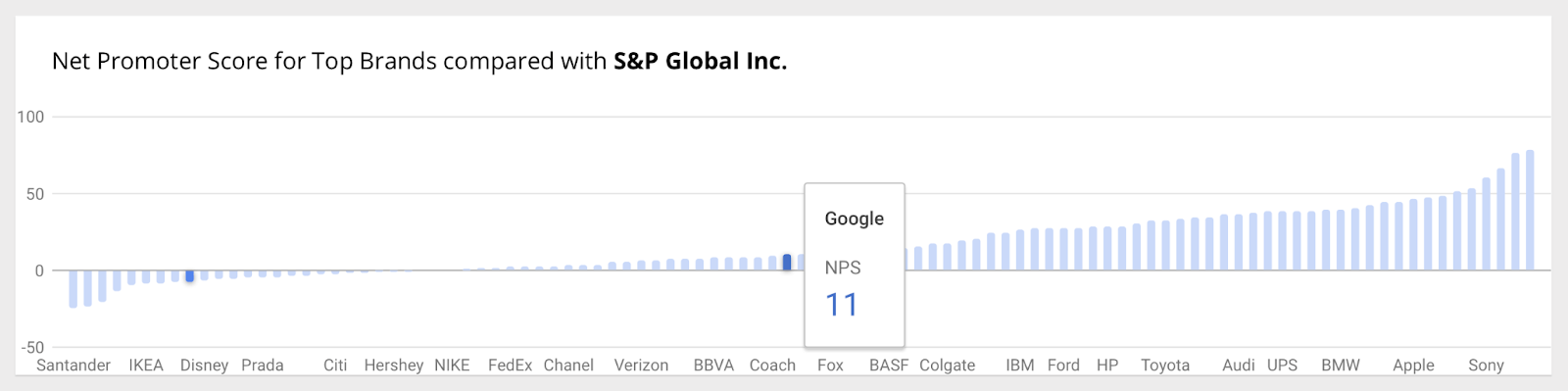 Отраслевые значения NPS есть в открытом доступе. Например, так выглядит глобальный рейтинг компаний мира: