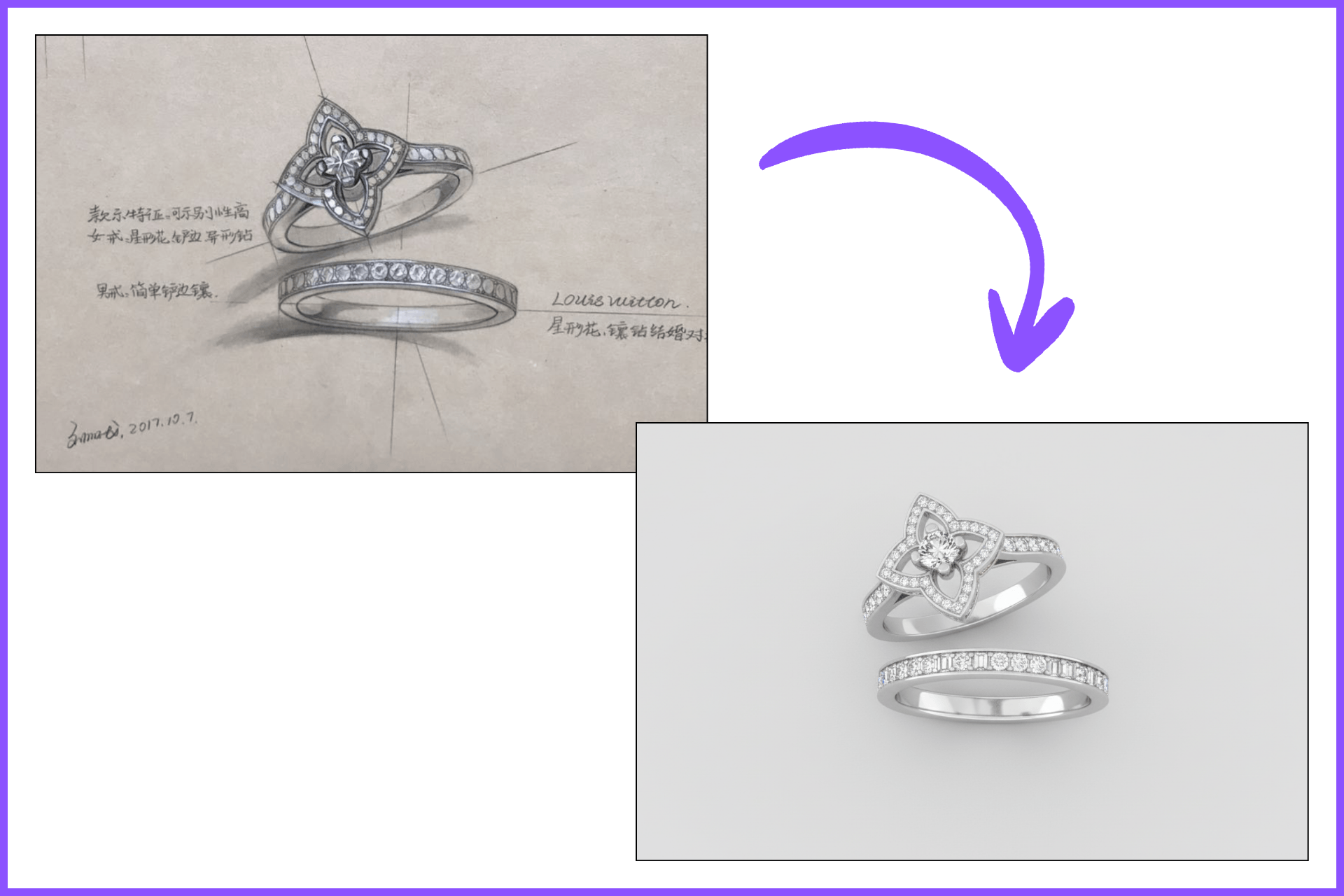 Промпт: “Создай реалистичную 3D-модель ювелирного изделия на основе этого чертежа и убери все надписи”