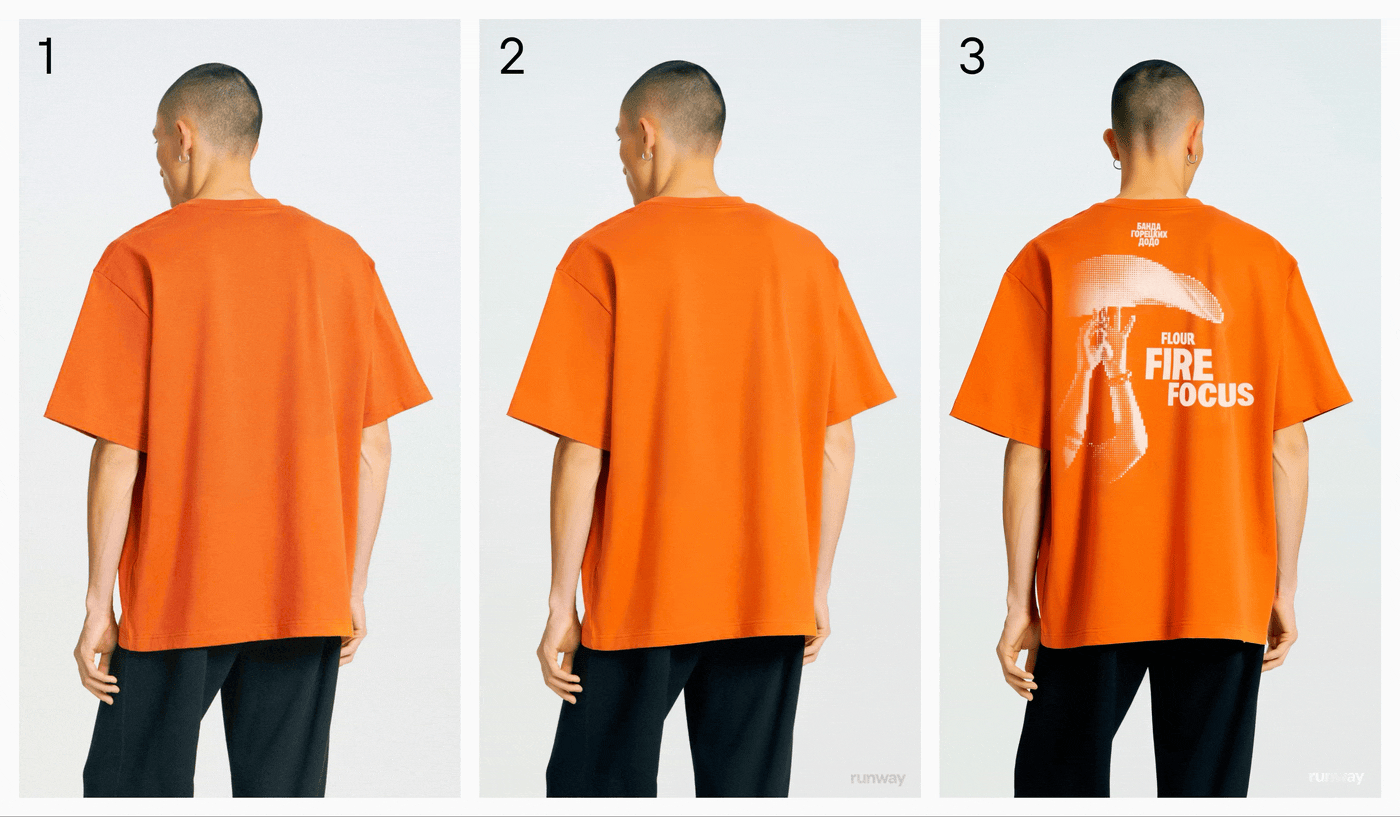 Нейросети стали для нас быстрым способом добавить движение и естественную динамику без ручного 3D-продакшена. Для генерации видео мы выбрали Runway с методом img-to-video — он дает управляемый результат и реалистичное движение без лишней CG-пластики. Мы понимали, что нейросеть может «съесть» детали принтов, поэтому сразу заложили ручной этап восстановления текстур и графики поверх сгенерированных видео.
