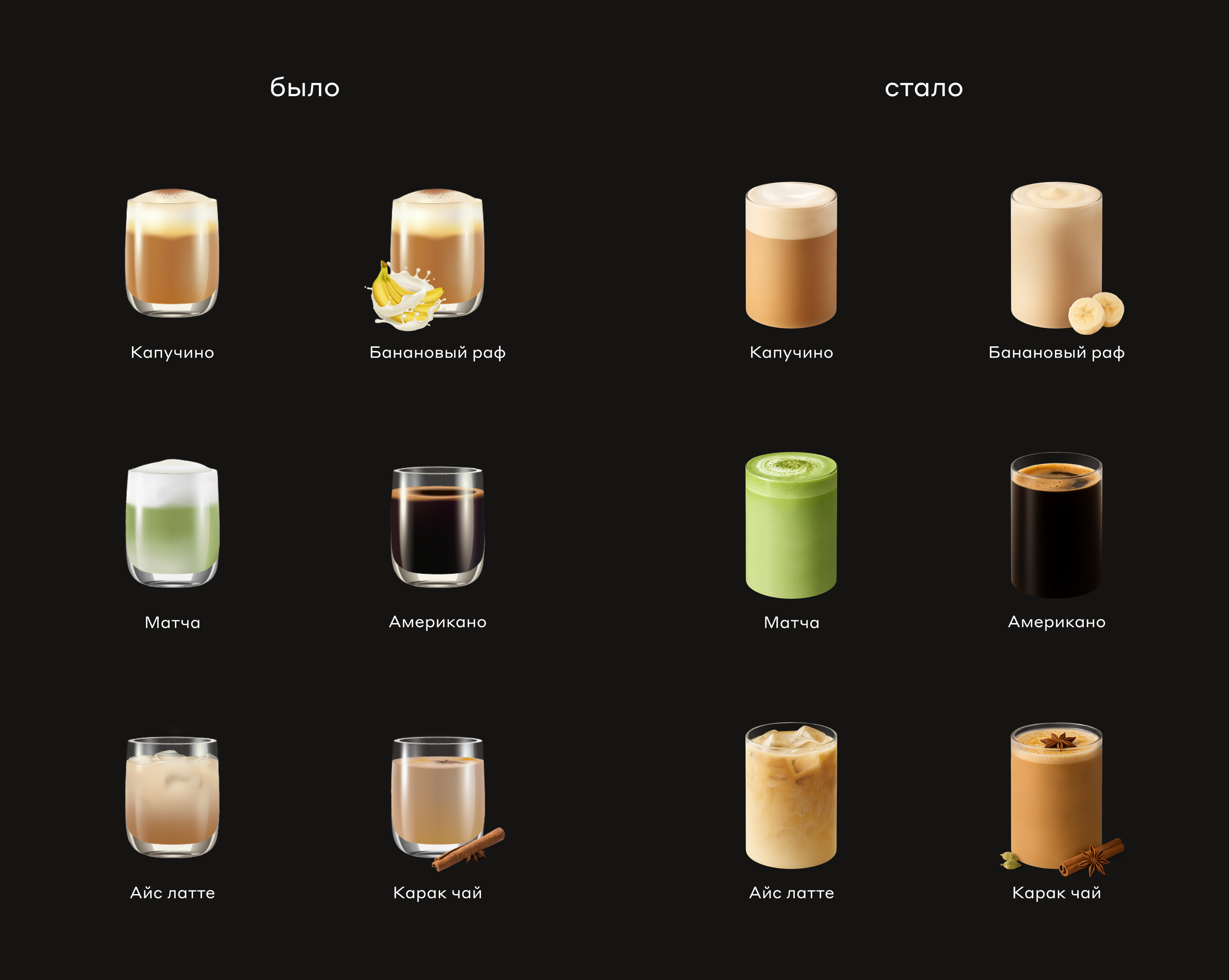 Обновить изображения напитков для меню в кофе-автомате. Ранее клиент использовал векторные иллюстрации — они хорошо показывали состав, но выглядели неаппетитно. Провести съемку было невозможно: мы работали удаленно, сроки были сжаты, а бюджет ограничен.