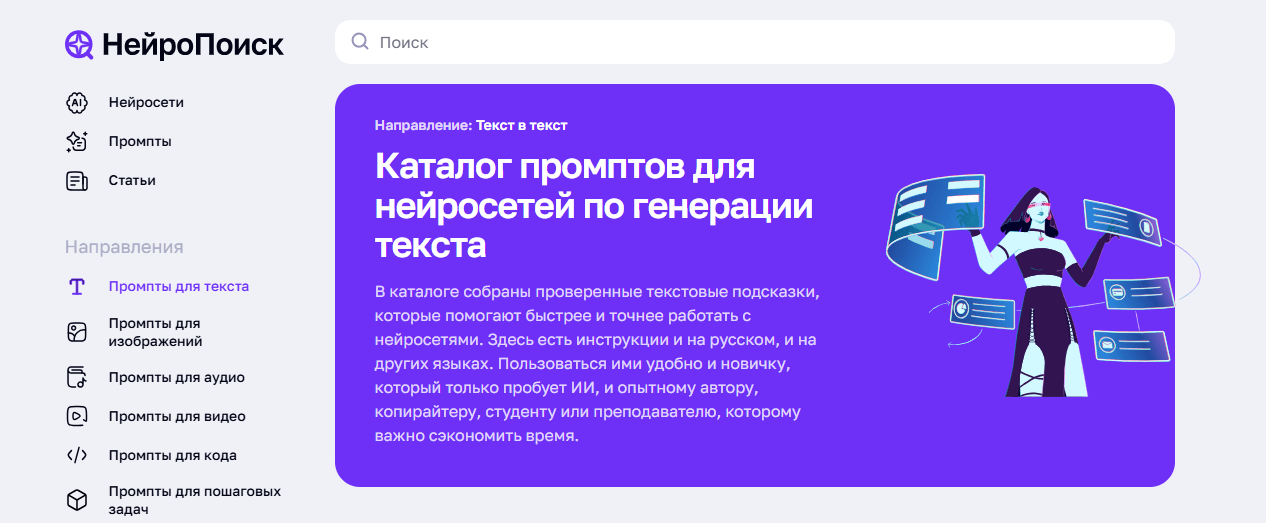 Эти платформы предлагают большие коллекции промптов на русском языке с удобной навигацией и категориями.