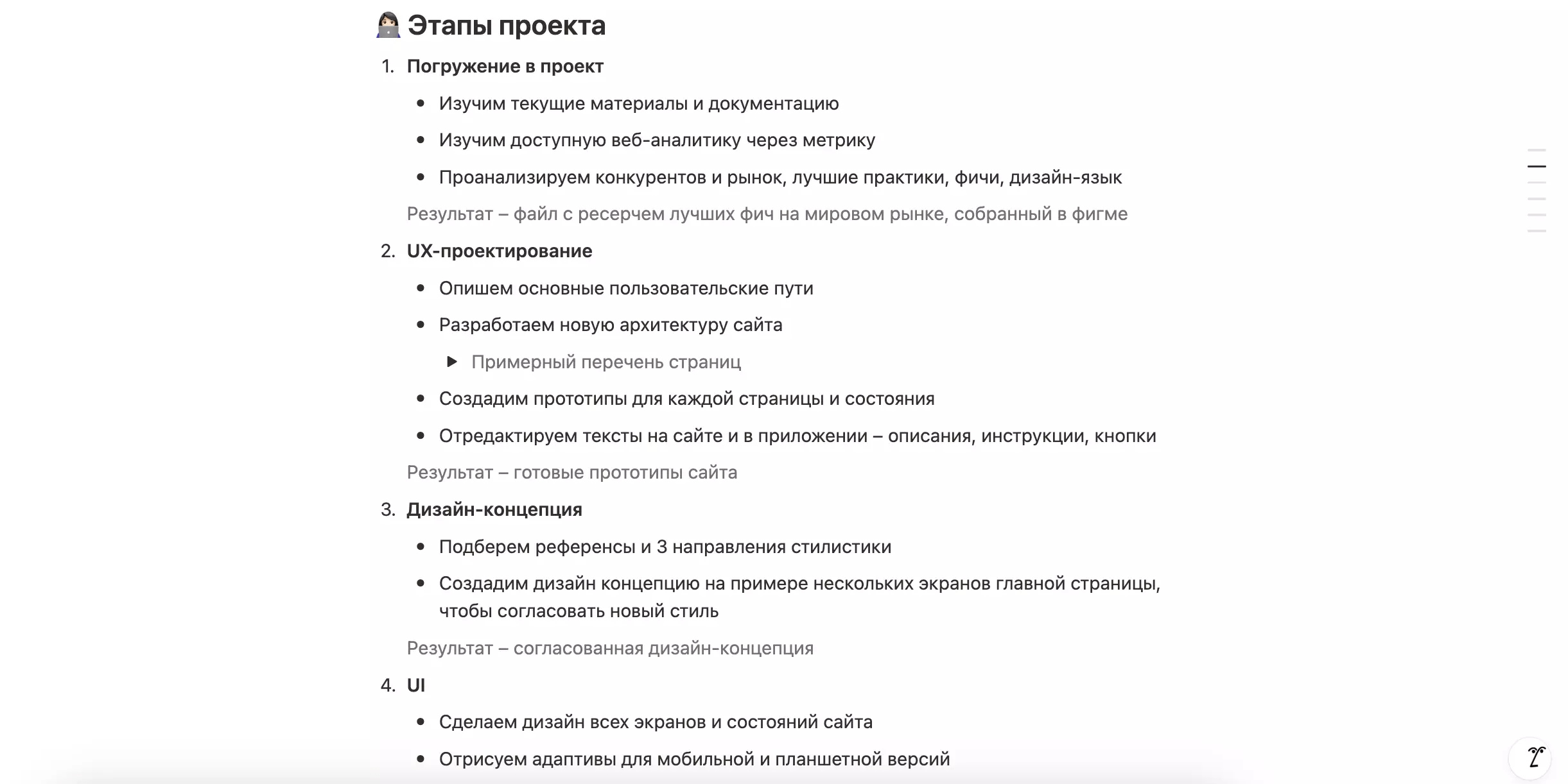 Это помогает и нам, и клиенту — меньше неопределённости, больше доверия и точек контроля по ходу проекта.
