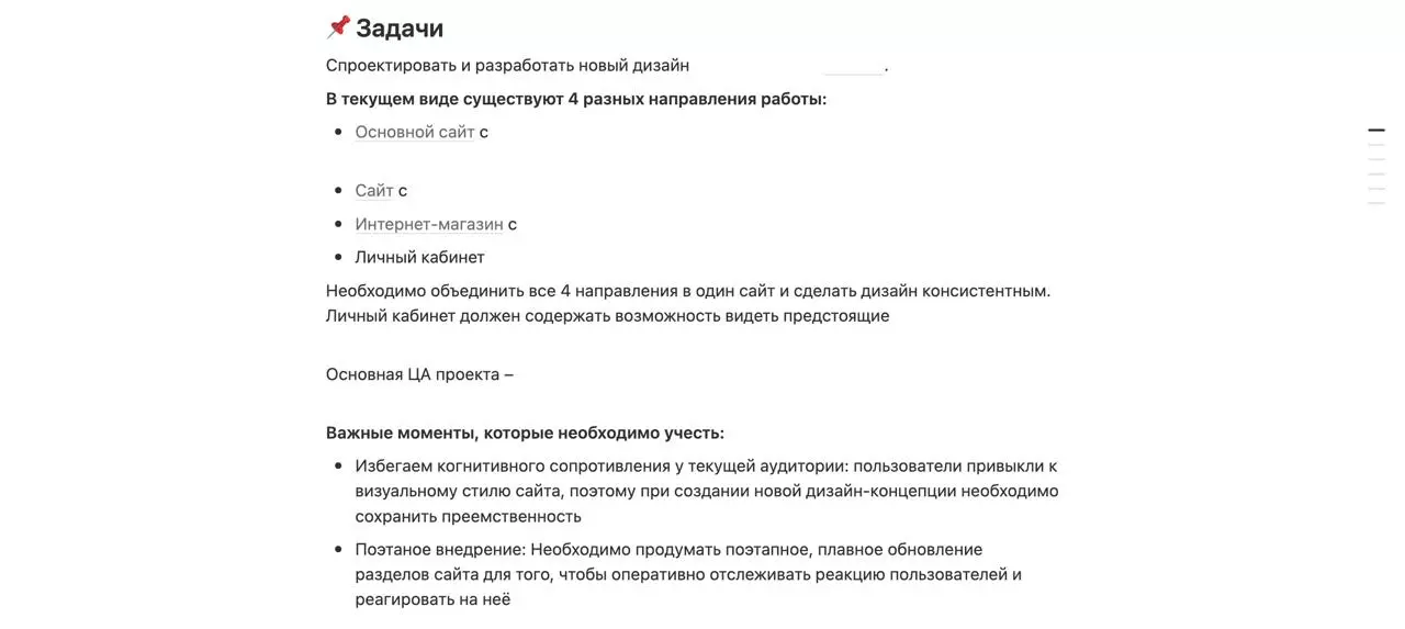 Описание задачи проекта в коммерческом предложении