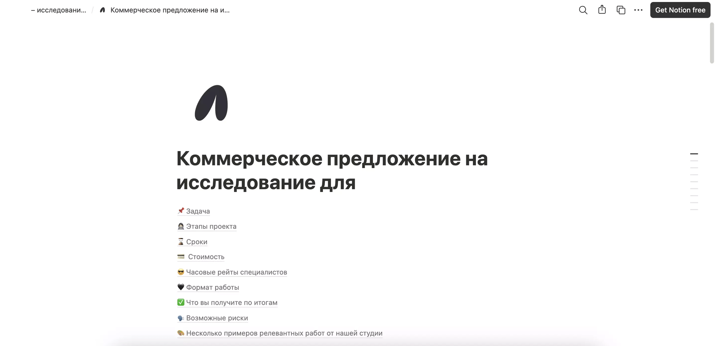 Мы делаем коммерческие предложения в Notion — с кейсами, структурой, референсами. Клиенты часто пересылают их коллегам и ЛПР-ам. Это документ, который работает за нас.