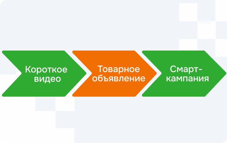 Например, короткое видео отлично подходит для первого касания. Оно знакомит с продуктом, показывает ситуацию, вызывает эмоцию. После этого пользователь может увидеть товарное объявление с конкретным предложением. А затем – смарт-кампанию, которая догонит его в нужный момент. Получается мягкая воронка. Без давления. Без ощущения, что человеку что-то навязывают.