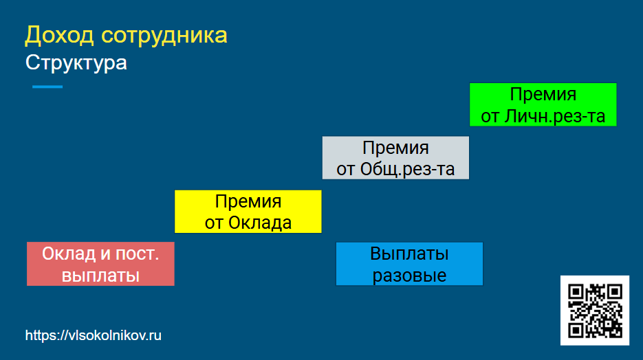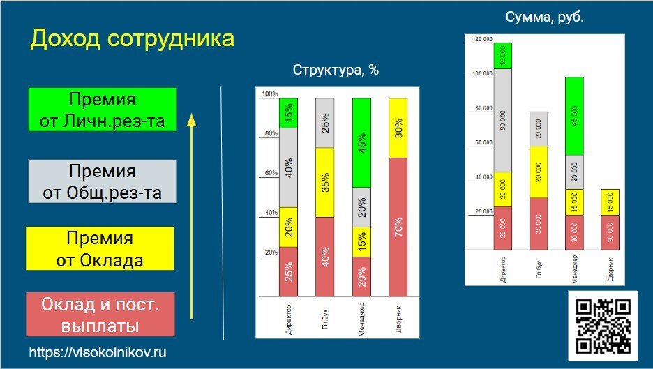 Для каждого бизнеса эти пропорции могут конечно же меняться, — это пример для формирования логики формирования дохода сотрудника.