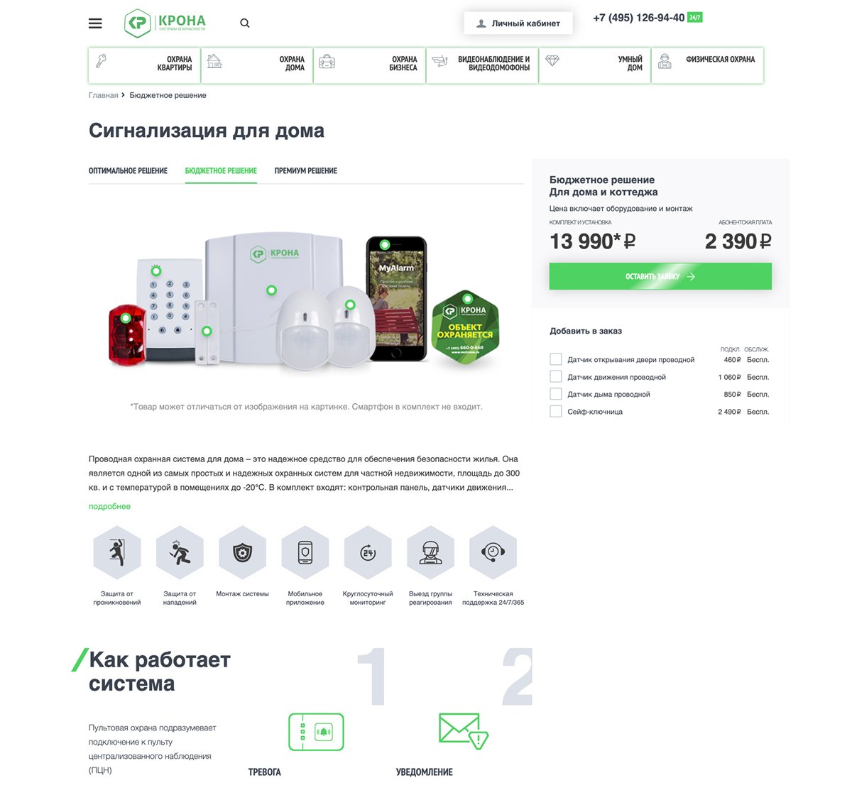В рамках проекта мы разработали корпоративный сайт с функцией интерактивных калькуляторов и адаптивным дизайном для компании-лидера рынка охранных услуг. Под каждую услугу компании «Крона» мы разработали отдельную посадочную страницу.