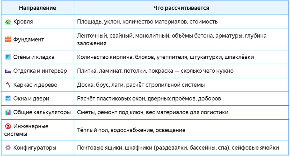 В каждой отрасли есть свои нюансы, и под них можно создавать специализированные инструменты: от расчёта свайных полей и пожарной сигнализации — до калькуляторов для ландшафтного дизайна и вентиляции.