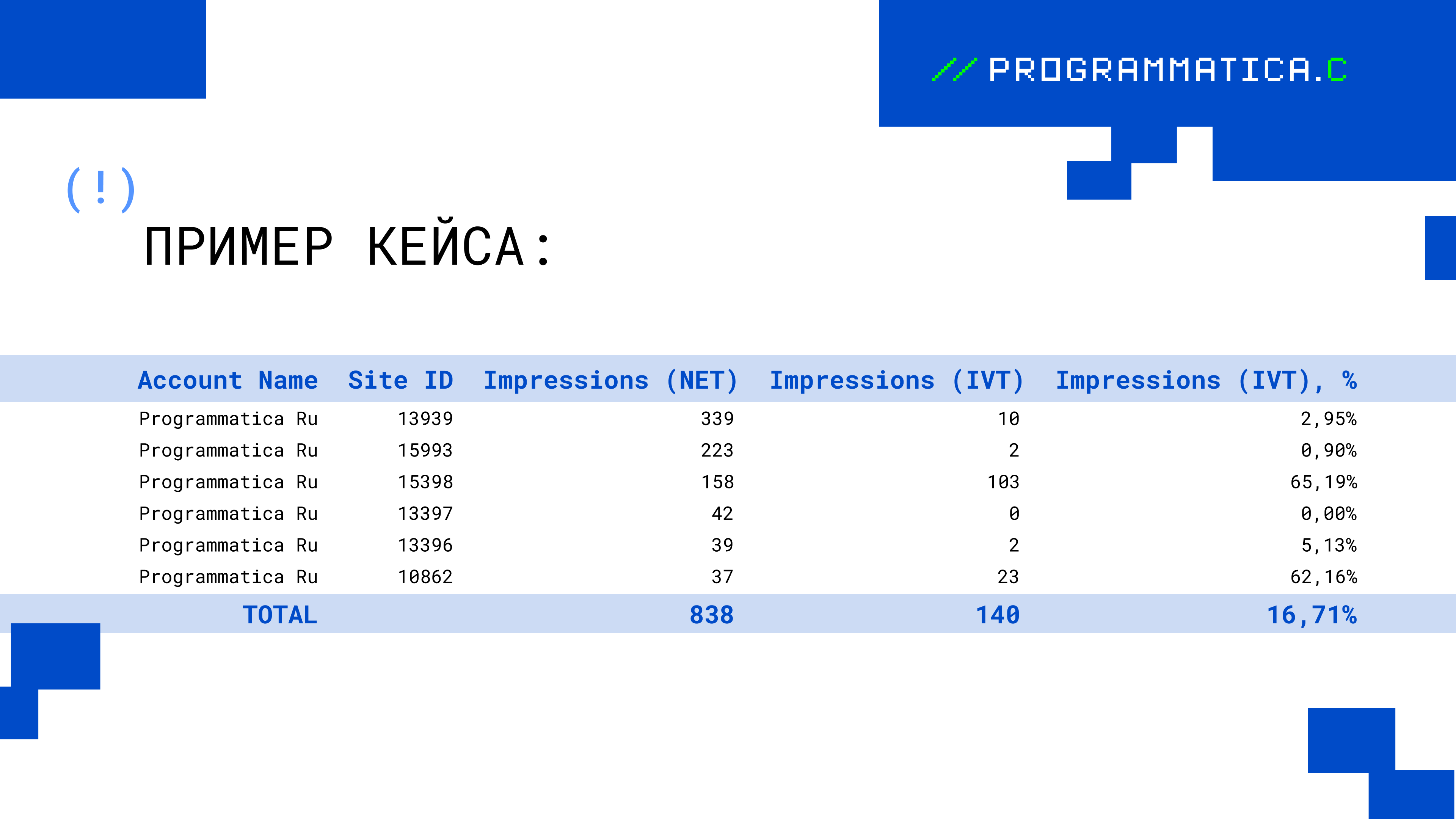 Так как мы в рамках данного размещения используем макрос {%SITEID%}, то нам доступна данные по IVT показам не просто в тотале, а в разбивке по ID сайтов. Зная эту информацию, легко сможем определить “фродящие” сайты, и исключить их из размещения.