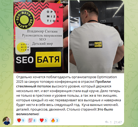 Чтобы не пропустить все важные новости о предстоящей 25-й SEO-конференции Optimization, подписывайтесь на чат участников конференции.