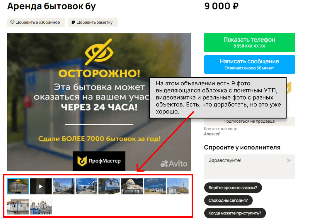 Пример: объявление с демонстрацией товара вызывает больше доверия.